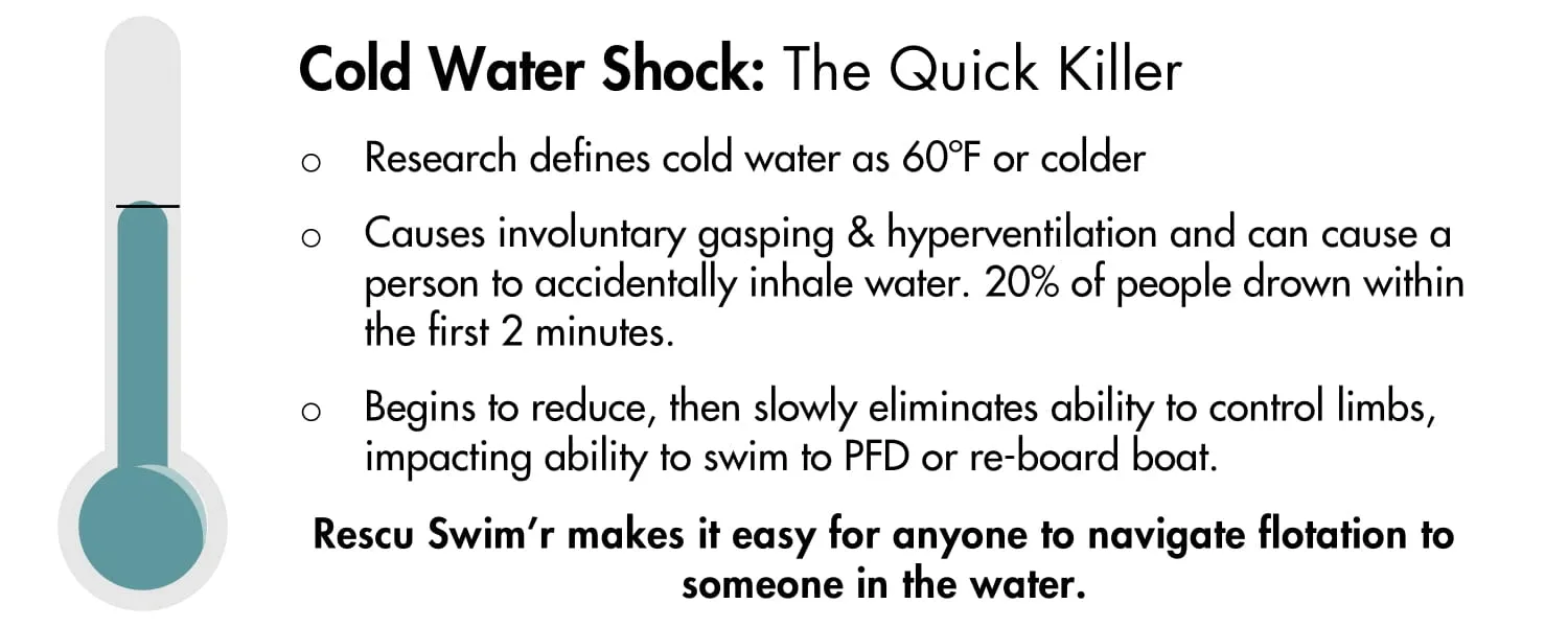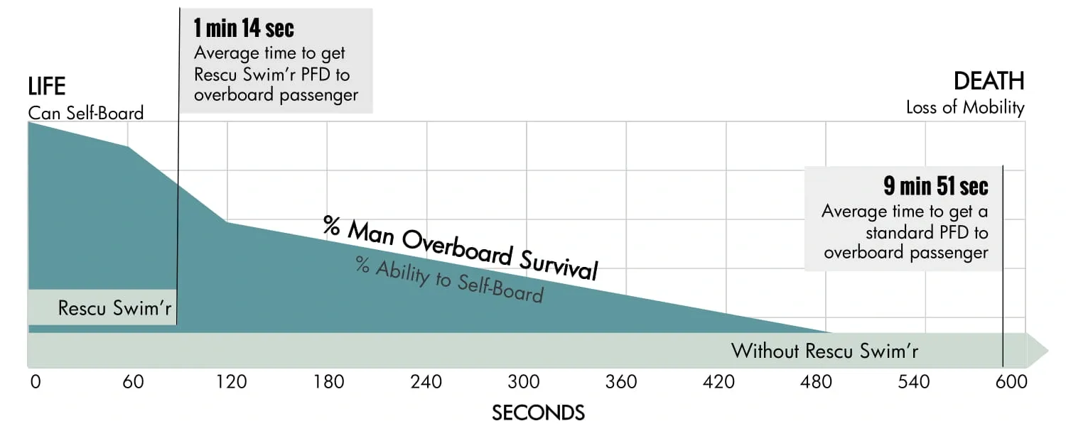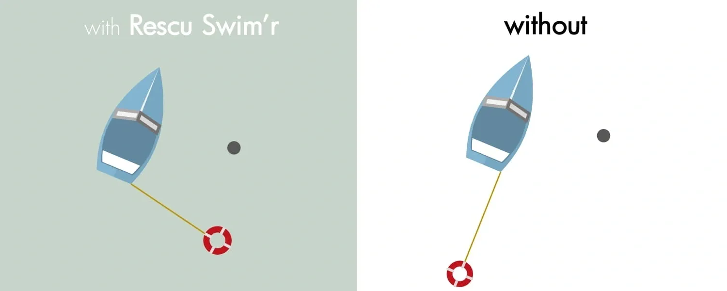 First rescue attempt shows how the buoy reacts without Rescu Swim'r. As you can see, the boat operator is unable to get the buoy to the overboard person. In this scenario, the victim is able to swim, isn't wearing clothing that weighs them down, and is wearing a life vest. Furthermore, this took place in the warm waters off the coast of Australia. All of these factors contribute to the ability of the passenger to eventually swim to the circling buoy. However, more often the victim who falls overboard is fully clothed (weighing them down) and not wearing a life vest. These factors combined with cold water shock or inability to swim in general, make swimming to the buoy a non-valid option for a rescue. The second video shows how much faster and safer the rescue is using a buoy fixed with Rescu Swim'r. The buoy travels at an angle to the boat, eliminating the need to circle the victim endlessly.